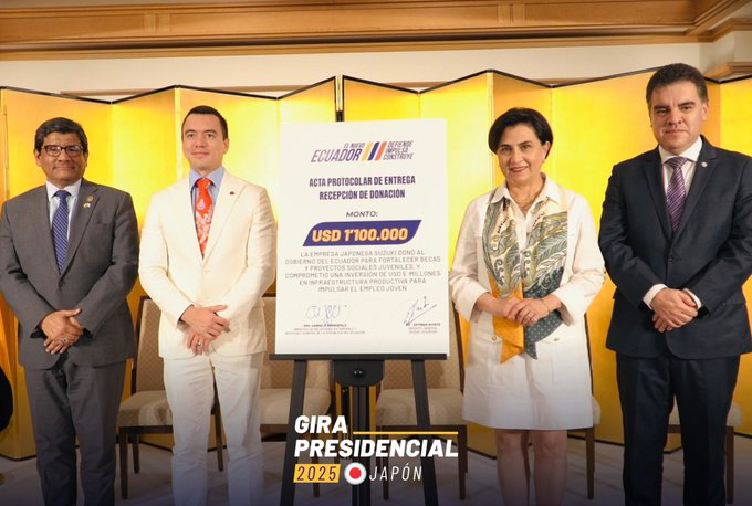 - Educación: becas académicas por $800.000 y un programa dual de estudios y prácticas en coordinación con Cancillería y Suzuki del Ecuador.
